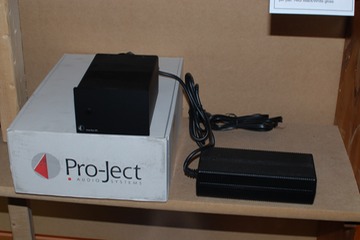New compact power amplifier. Outboard power supply. 100 watts per channel. Full warranty. Box, packing and manual included.